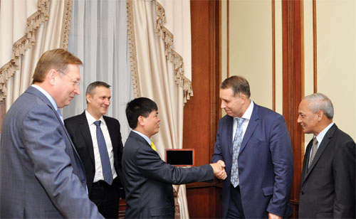 Chủ tịch HĐTV Petrovietnam Nguyễn Xuân Sơn và Thứ trưởng Bộ Năng lượng Liên bang Nga I.P. Sentiurin tháng 11/2014