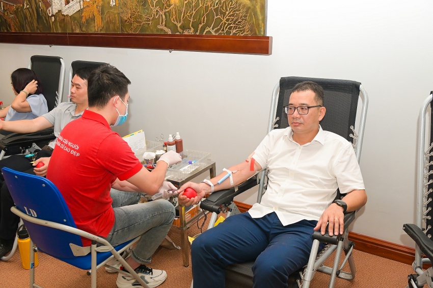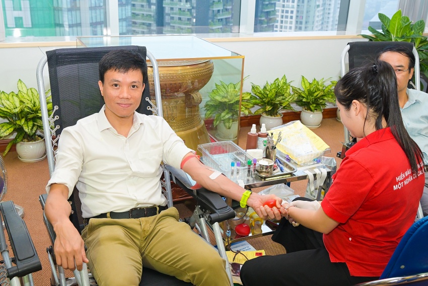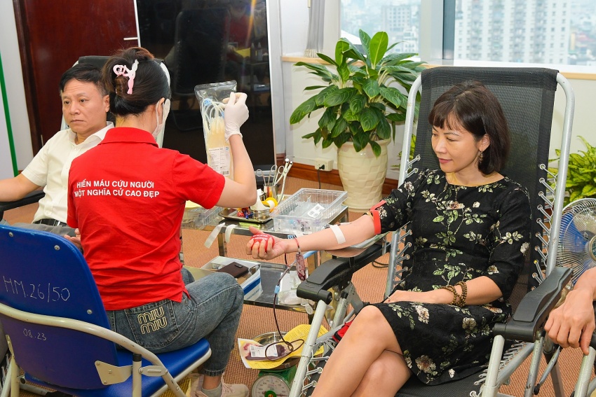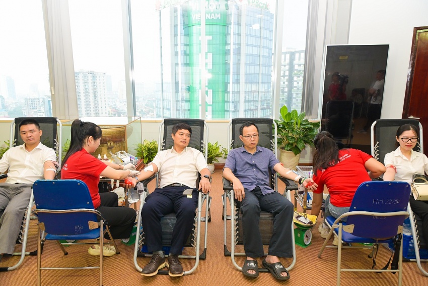 | Các cán bộ nhân viên Tập đoàn tham gia hiến máu. |