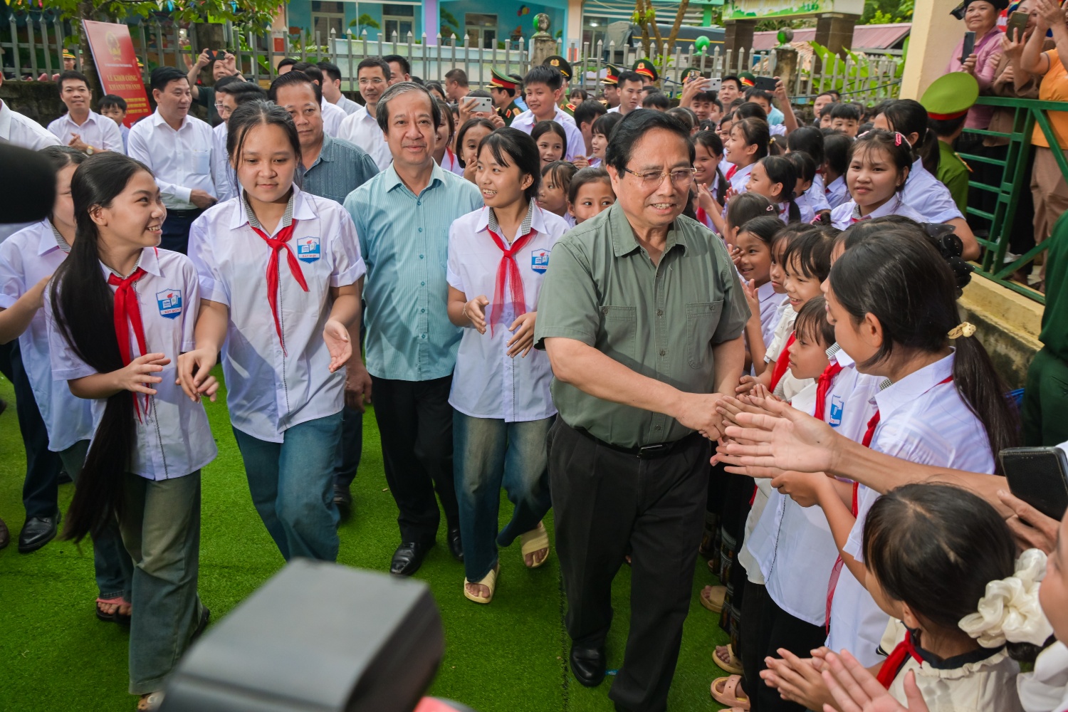 | Thủ tướng Phạm Minh Chính và các em học sinh xã miền núi Bát Mọt |