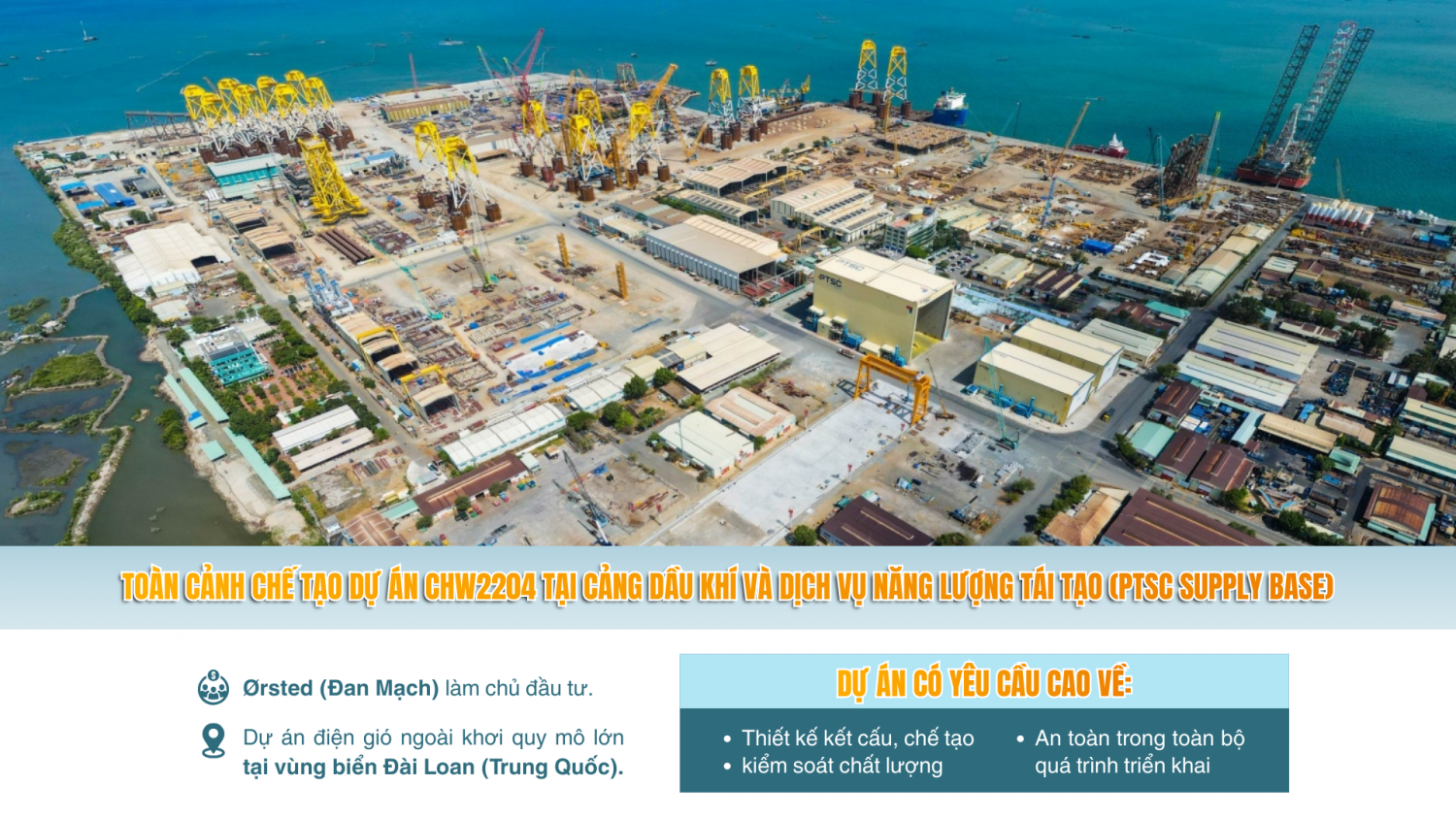 Năm 2025, các công trình thanh niên của lực lượng Đoàn Thanh niên Tập đoàn Công nghiệp - Năng lượng Quốc gia Việt nam (Petrovietnam) tiếp tục ghi dấu ấn trong việc đồng hành cùng nhiệm vụ sản xuất - kinh doanh, giải quyết các vấn đề thực tiễn của đất nước. Công trình “Gia công, tiền chế trụ chân đế điện gió ngoài khơi thuộc Dự án CHW2204” được Đoàn cơ sở Chi nhánh PTSC - Cảng Dầu khí và Dịch vụ Năng lượng tái tạo (PTSC Supply Base) trực tiếp tổ chức thực hiện, nằm trong khuôn khổ phong trào thi đua và định hướng hành động của Đoàn Thanh niên Tổng công ty Cổ phần Dịch vụ Kỹ thuật Dầu khí Việt Nam (PTSC) và Đoàn Thanh niên Tập đoàn, gắn chặt mục tiêu công tác Đoàn với nhiệm vụ sản xuất kinh doanh, thực hiện các công trình trọng điểm.