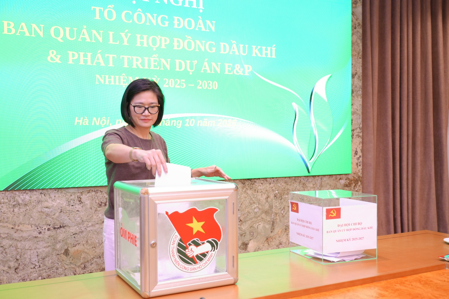 | Các đại biểu bỏ phiếu bầu Tổ trưởng, Tổ phó Công đoàn Ban QLHĐ DK và PTDA E&P nhiệm kỳ 2025-2030 và đoàn đại biểu dự Đại hội cấp trên. |