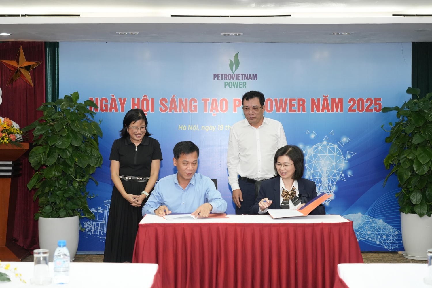 | Ông Ngô Văn Chiến - Phó Tổng Giám đốc, Chủ nhiệm Hội đồng sáng kiến PV Power và bà Ngô Hồng Vân - Chủ tịch Công đoàn PV Power ký giao ước thi đua thực hiện các sáng kiến năm 2026 dưới sự chứng kiến của lãnh đạo Tổng công ty |