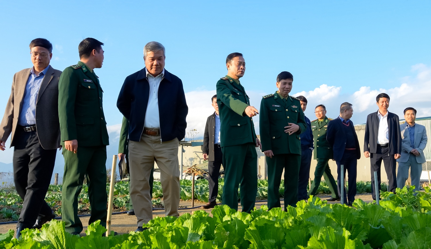 | Đoàn công tác Petrovietnam tham quan trụ sở làm việc, khu tăng gia sản xuất của cán bộ, chiến sĩ Đồn Biên phòng Sin Suối Hồ. |