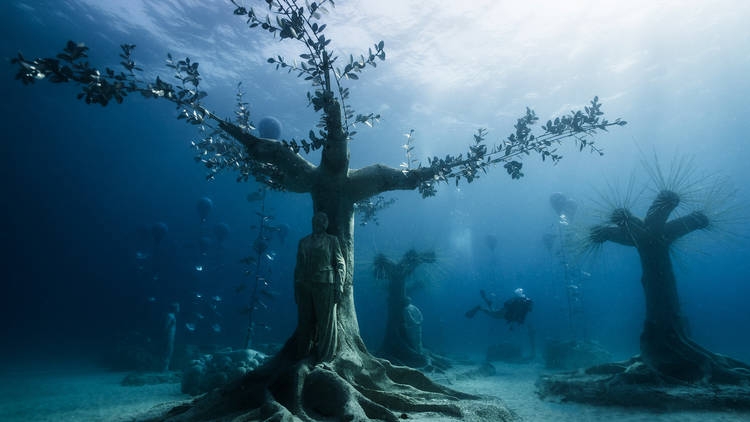 Để tạo ra những trải nghiệm siêu thực khi đi bộ qua một khu rừng rậm rạp dưới nước, những bức tượng cây nặng 13 tấn đã được hạ xuống biển. Trong các bức tượng, có những đứa trẻ da xám bị chết cóng giữa cuộc chơi trong rừng, một số như đang chĩa máy ảnh vào loài người như một lời chỉ trích về cách thế giới hiện tại đang làm với thiên nhiên.
