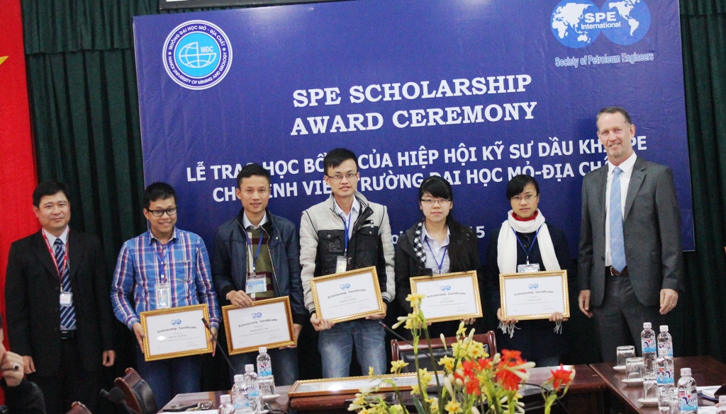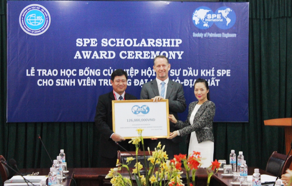 Được biết, SPE là một trong những đối tác truyền thống có mối quan hệ hợp tác thân thiết với trường Đại học Mỏ - Địa chất. Trong những năm qua SPE đã có những đóng góp rất lớn trong sự nghiệp khuyến học đối với sinh viên trường Đại học Mỏ - Địa chất nói chung và sinh viên Khoa Dầu khí nói riêng. SPE đã dành những suất học bổng trị giá hàng trăm triệu đồng tặng các bạn sinh sinh viên có thành tích học tập xuất sắc, trong đó bao gồm tiền mặt và các suất học bổng Tiếng Anh.