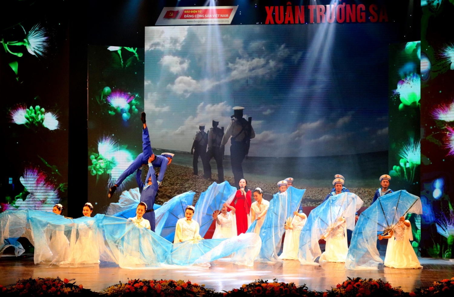 Chương trình gồm nhiều tiết mục ca múa nhạc đặc sắc về biển đảo, tràn đầy cảm xúc về Trường Sa, về tình yêu quê hương đất nước như: “Tổ quốc gọi tên mình”, “Khúc quân ca Trường Sa”, “Chào Trường Sa”, “Bâng khuâng Trường Sa”, “Sinh ra ở Trường Sa”, “Mùa xuân trên quê hương”… qua sự thể hiện của các nghệ sĩ: NSND Tạ Minh Tâm, Trọng Tấn, Nhóm Oplus, Đông Hùng, Bảo Trâm, Thu Thủy, Mạnh Quân và nhóm nhảy mùa xuân, nhóm thiếu nhi CLB Ngôi Sao…